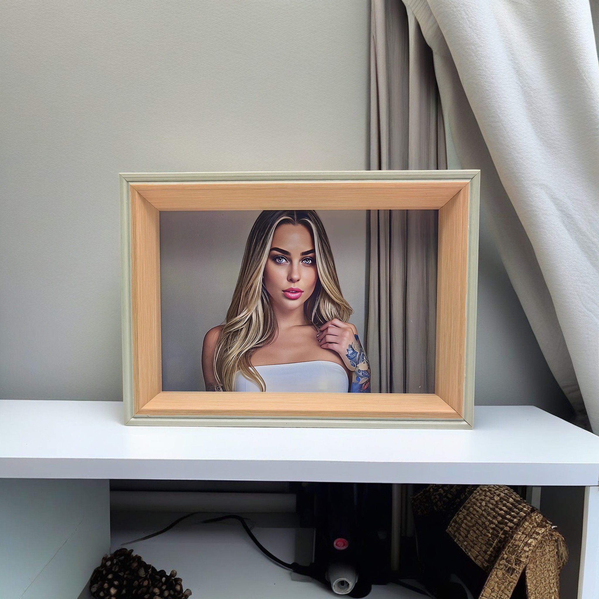 8inch-6×8 vertical white-and-wood frame | Art & Personalized